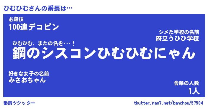 | ヘコむあだ名 | 『ひむにゅー』『つくし』『ひむを』 |