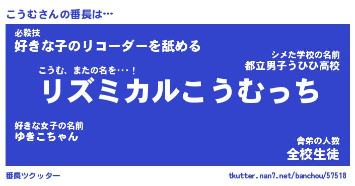 | ヒーロー風カッコイイあだ名 | 『スーパーコウム』『ウルトラこうむマン』 |