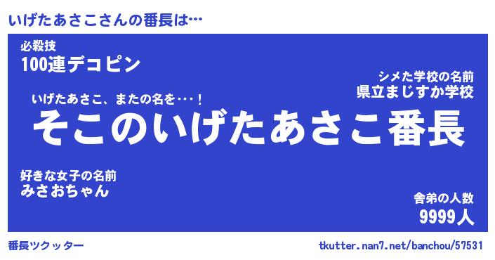 | ピコ太郎風あだ名 | 『イコ四郎』『ピイ三郎』『イゲ八郎』 |