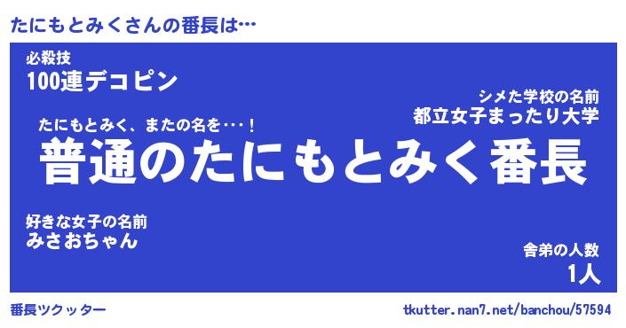 | ポケモン風あだ名 | 『タニチュウ』『タニモダネ』 |
