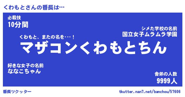 | ヒーロー風カッコイイあだ名 | 『スーパークワモト』『天弓騎士クワ』 |