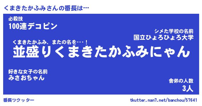 | 肩書あだ名 | 『くまきたかふみ店長』 |