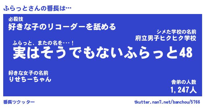 | 意味不明あだ名 | 『ペロリンふらっと』『永久保存ふらっと』 |