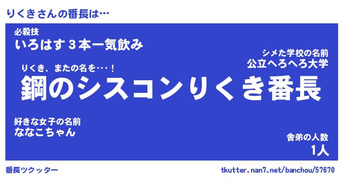| ヒーロー風カッコイイあだ名 | 『スーパーリクキ』『ウルトラりくきマン』 |