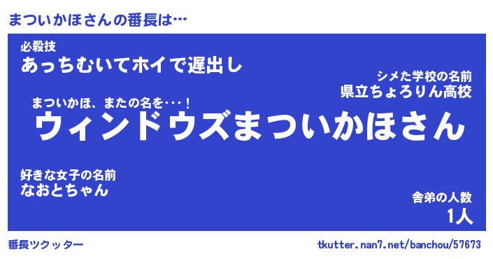| ヒーロー風カッコイイあだ名 | 『スーパーマツイカホ』『黄金騎士マツ』 |