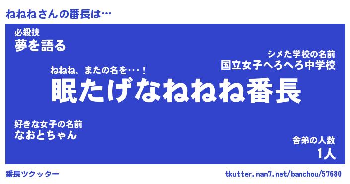 | 2回繰り返すあだ名 | 『ねねねね』『ねねねね』『けんけん』 |