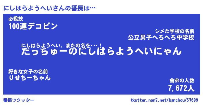 | ヘコむあだ名 | 『にしにー』『つくし』『にしぷりん』 |