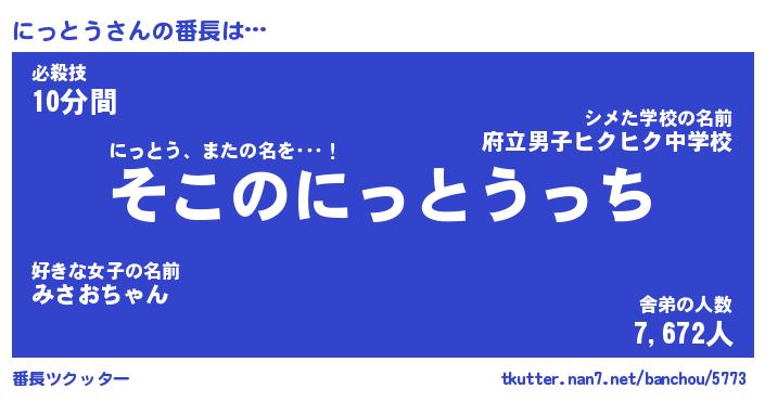 | ヒーロー風カッコイイあだ名 | 『スーパーニットウ』『魔戒騎士ニッ』 |