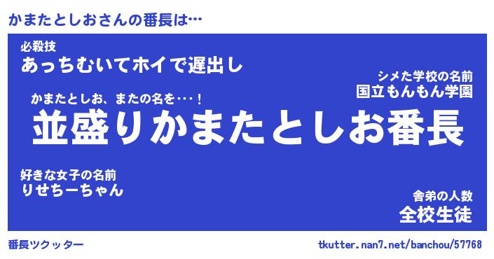 | 肩書あだ名 | 『かまたとしお社長』『かまたとしお班長』 |