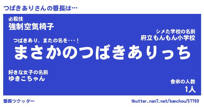 | ヒーロー風カッコイイあだ名 | 『スーパーツバキアリ』『暗黒騎士ツバ』 |