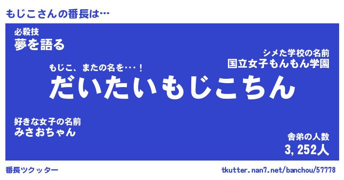 | 肩書あだ名 | 『もじこ社長』『もじこ国家主席』 |