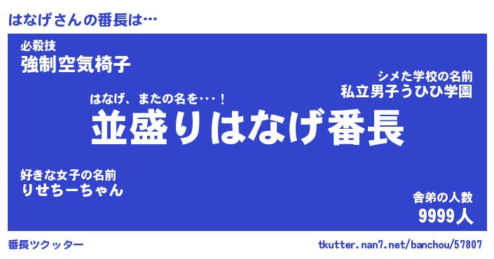 | ヒーロー風カッコイイあだ名 | 『スーパーハナゲ』『ウルトラはなげマン』 |