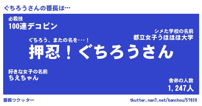 | ヒーロー風カッコイイあだ名 | 『スーパーグチロウ』『黄金騎士グチ』 |