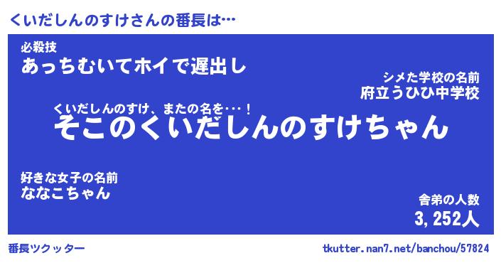 | 伝説のあだ名 | 『不死鳥のスナイパーくいだしんのすけ』 |