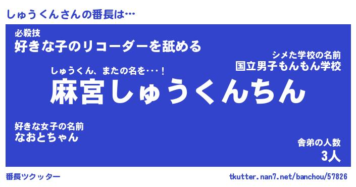 | 肩書あだ名 | 『しゅうくん御曹司』『しゅうくん団長』 |