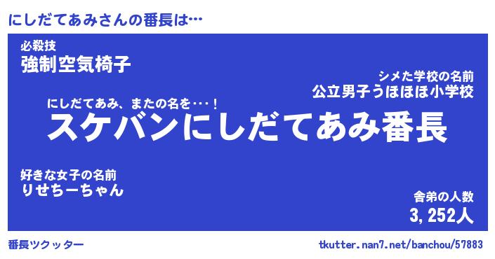 | ポケモン風あだ名 | 『ニシチュウ』『ニシダダネ』 |