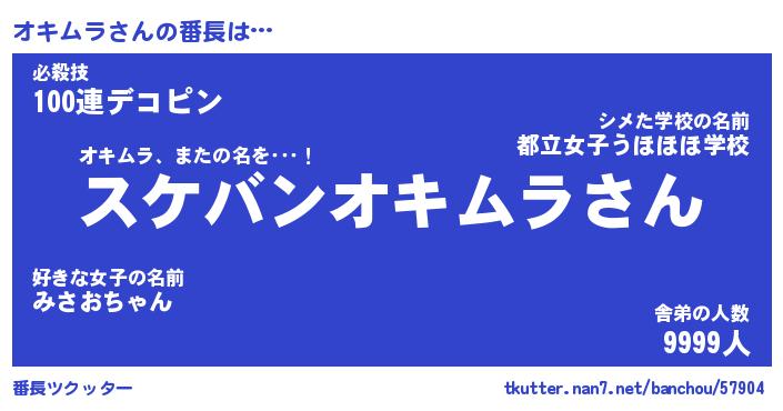 | ヒーロー風カッコイイあだ名 | 『スーパーオキムラ』『天弓騎士オキ』 |