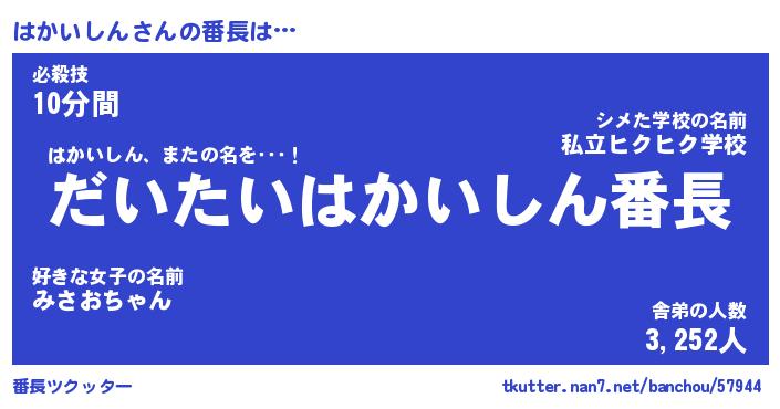 | ヒーロー風カッコイイあだ名 | 『スーパーハカイシン』『幻影騎士ハカ』 |