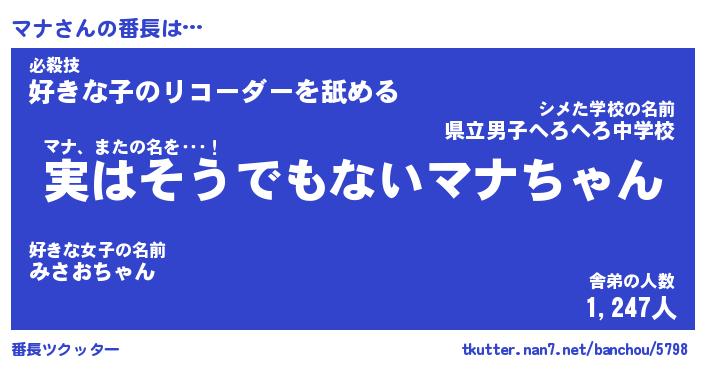 | 2回繰り返すあだ名 | 『マナマナ』『ママナナ』『ぬらぬら』 |
