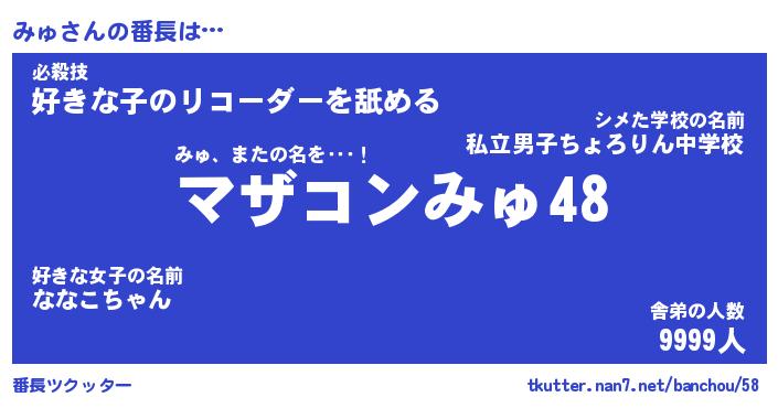 | ヒーロー風カッコイイあだ名 | 『スーパーミュ』『ウルトラみゅマン』 |