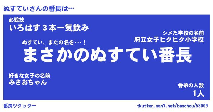 | 肩書あだ名 | 『ぬすてい店長』『ぬすてい総理大臣』 |