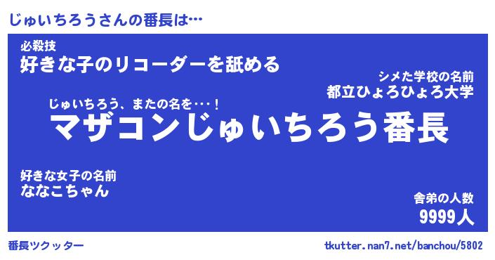 | 意味不明あだ名 | 『ペロリンじゅいちろう』 |