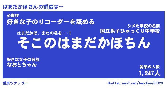| ヒーロー風カッコイイあだ名 | 『スーパーハマダカホ』『銀牙騎士ハマ』 |