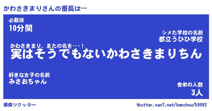 | 伝説のあだ名 | 『封印されしスナイパーかわさきまり』 |