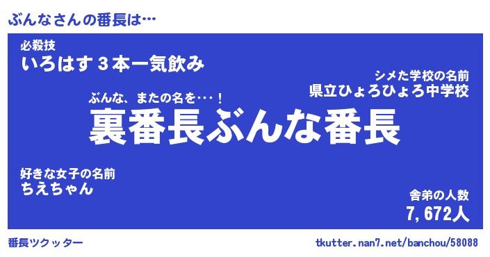 | ヒーロー風カッコイイあだ名 | 『スーパーブンナ』『ウルトラぶんなマン』 |
