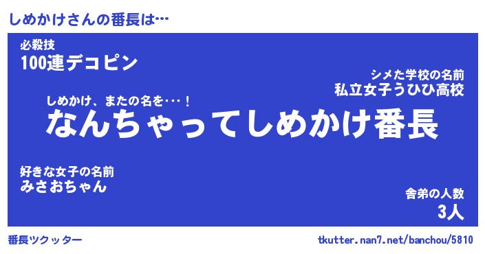 | ヒーロー風カッコイイあだ名 | 『スーパーシメカケ』『魔戒騎士シメ』 |