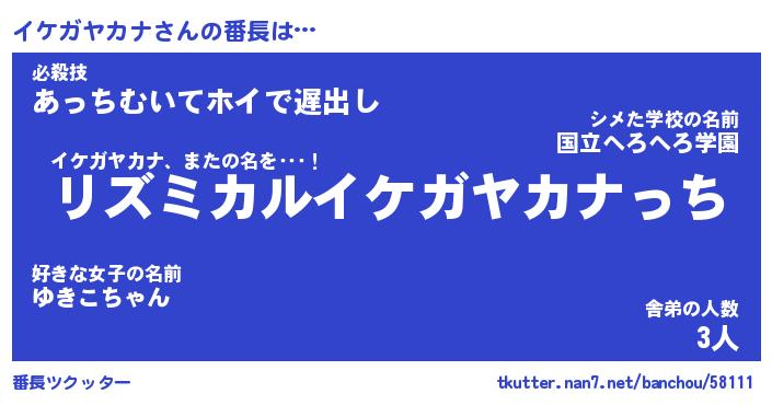| ポケモン風あだ名 | 『イケチュウ』『イケガダネ』 |