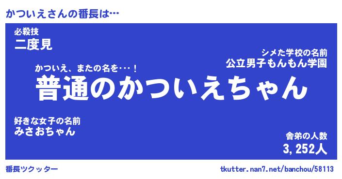 | 意味不明あだ名 | 『ペロリンかついえ』『永久保存かついえ』 |