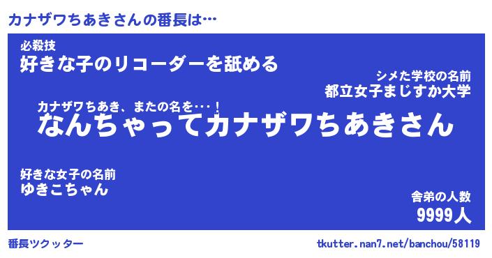 | 恥ずかしいあだ名 | 『プリティーカナザワちあき』『カナちん』 |