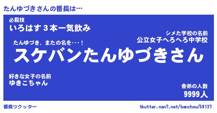 | ファンタジー風あだ名 | 『タンフェル』『エターナルタンユヅキー』 |