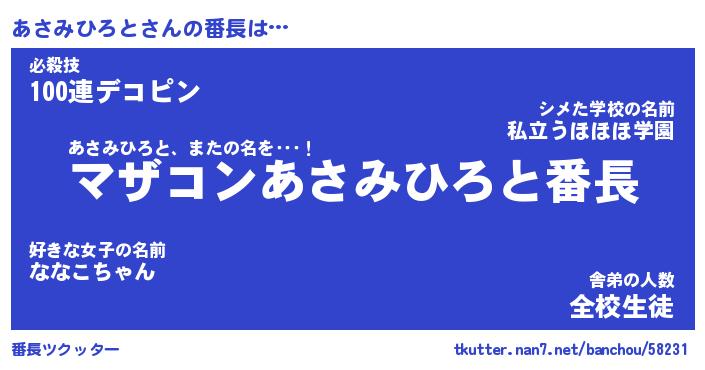 | 伝説のあだ名 | 『封印されしスナイパーあさみひろと』 |