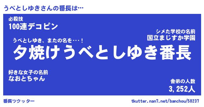 | 伝説のあだ名 | 『封印されしスナイパーうべとしゆき』 |