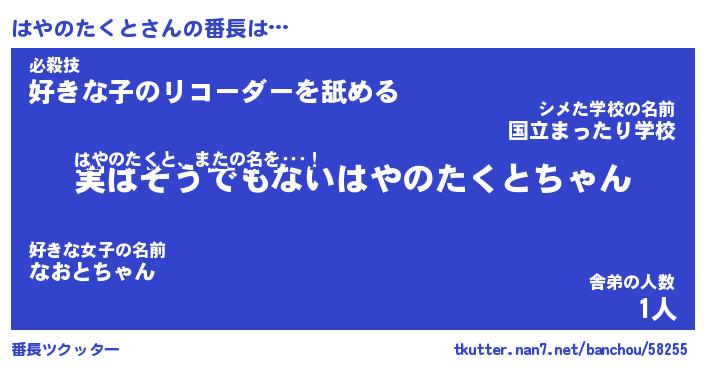 | ピコ太郎風あだ名 | 『ハコ三郎』『ピハ四郎』『ハヤ十郎』 |