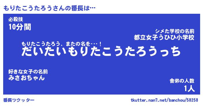 | ヒーロー風カッコイイあだ名 | 『スーパーモリタコウタロウ』 |