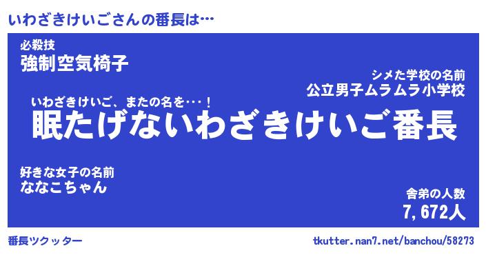 | 男性向けラノベタイトル風あだ名 | 『イワザキケイゴアートオンライン』 |