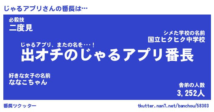 | 男性向けラノベタイトル風あだ名 | 『じゃるアプリの憂鬱』 |