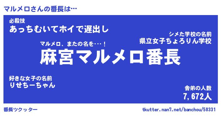 | ヒーロー風カッコイイあだ名 | 『スーパーマルメロ』『炎刃騎士マル』 |