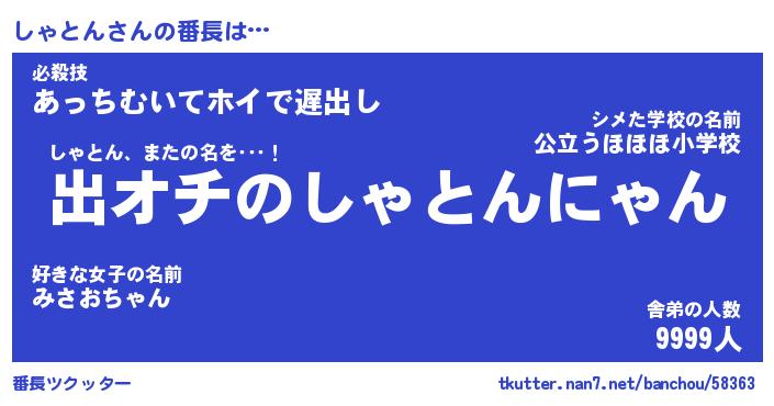 | 伝説のあだ名 | 『伝説のスナイパーしゃとん』 |