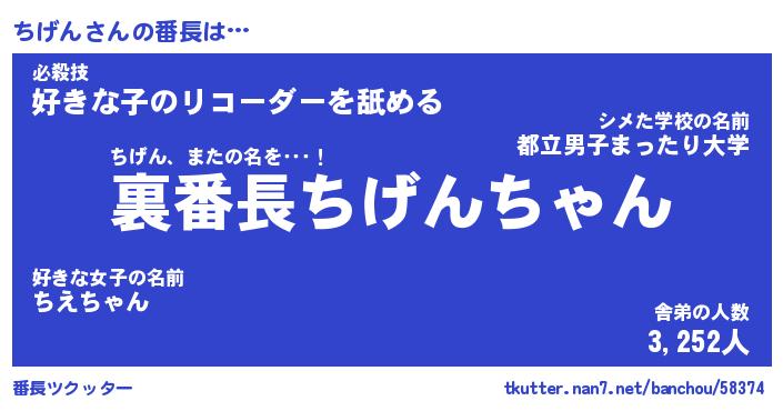 | ヒーロー風カッコイイあだ名 | 『スーパーチゲン』『ウルトラちげんマン』 |