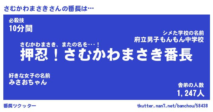 | 伝説のあだ名 | 『封印されしスナイパーさむかわまさき』 |
