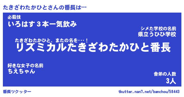 | 肩書あだ名 | 『たきざわたかひと御曹司』 |
