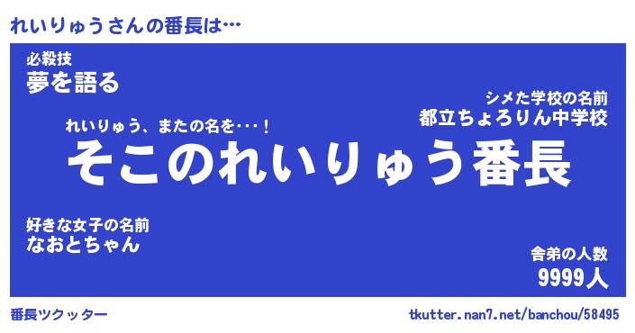| 男性向けラノベタイトル風あだ名 | 『れいりゅうの憂鬱』 |