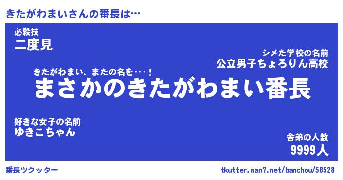 | 伝説のあだ名 | 『伝説のスナイパーきたがわまい』 |