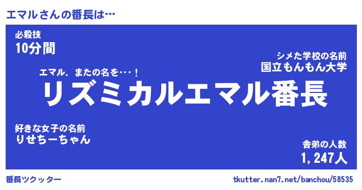 | 意味不明あだ名 | 『ペロリンエマル』『エマルフォーエバー』 |