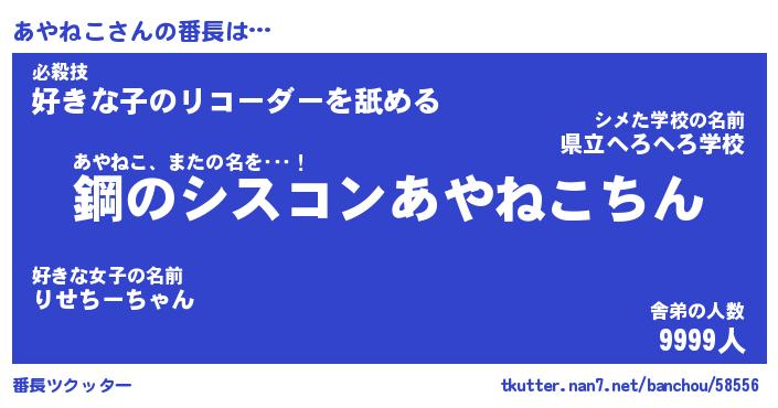 | ヘコむあだ名 | 『あやにー』『つくし』『あや太郎』 |