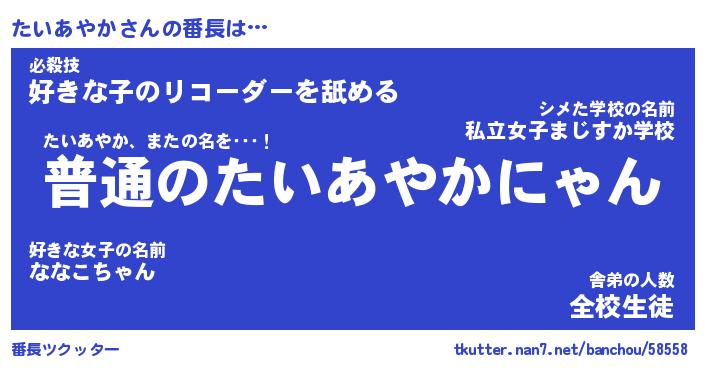 | ヒーロー風カッコイイあだ名 | 『スーパータイアヤカ』『暗黒騎士タイ』 |